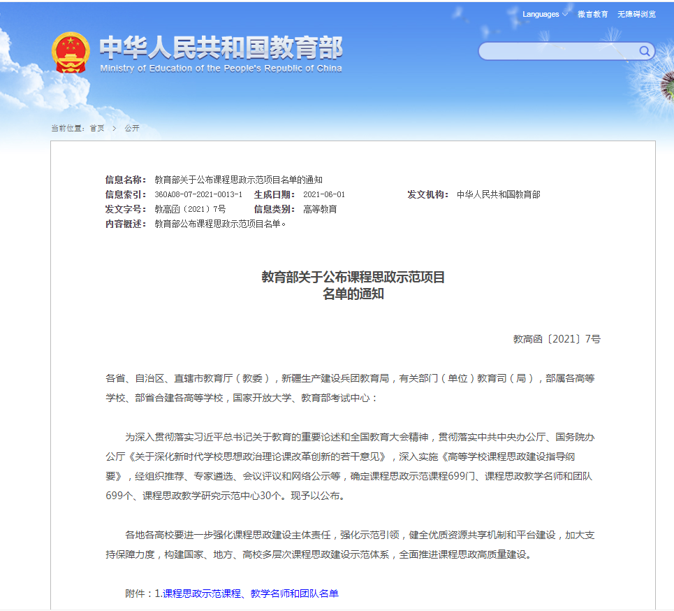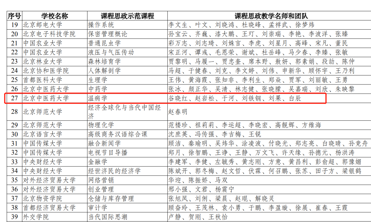7. 2021年国家级课程思政示范项目:《温病学》课程、教学名师及团队