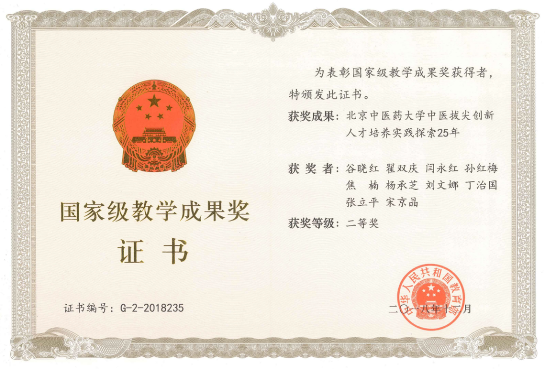 3. 2018年国家级高等教育教学成果二等奖:北京中医药大学中医拔尖创新人才培养实践探索25年