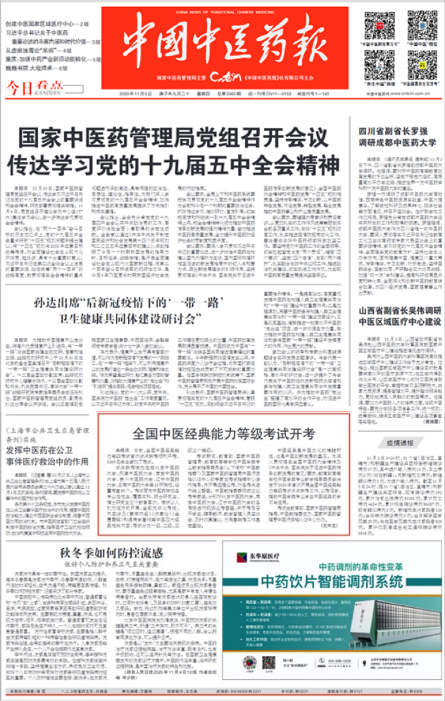 5. 以考促学!全国中医经典能力等级考试开考。中国中医药报,2020.11.05