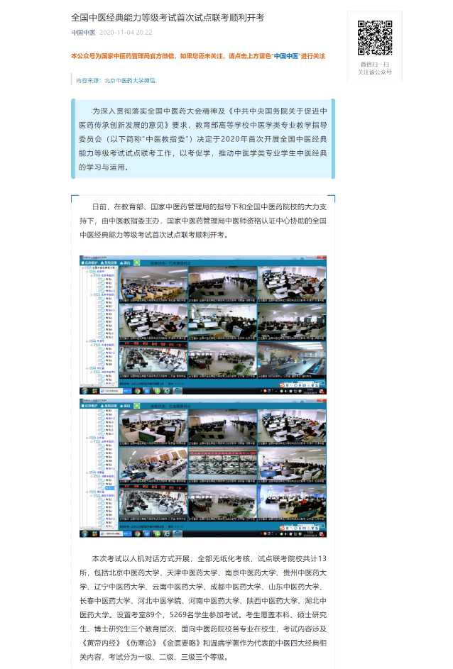 6. 全国中医经典能力等级考试首次试点联考顺利开考,国家中医药管理局