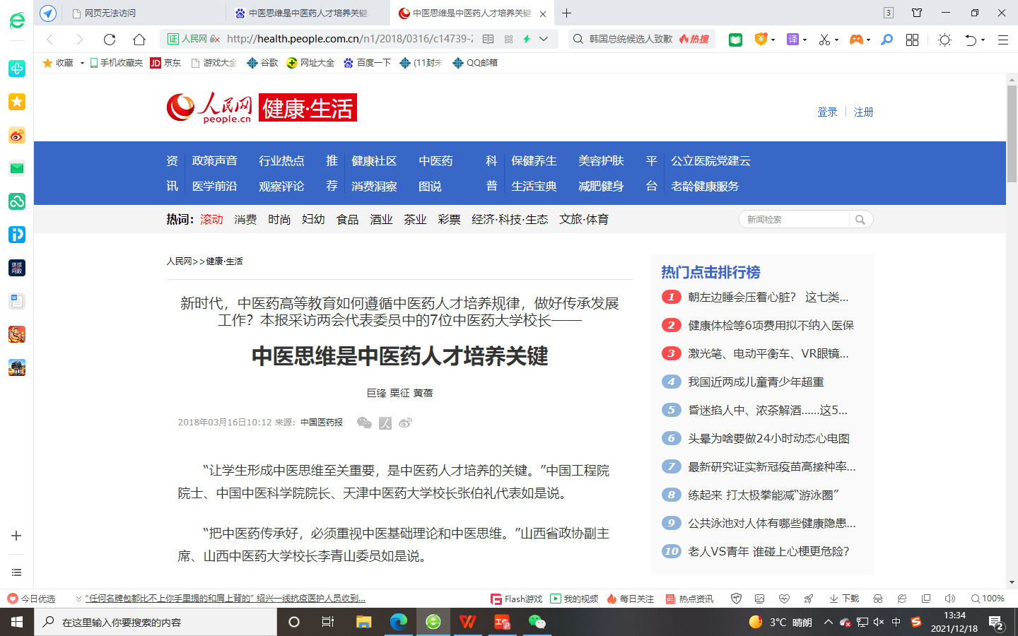 24.中医思维是中医药人才培养关键.人民网,2018 年 3 月 16 日