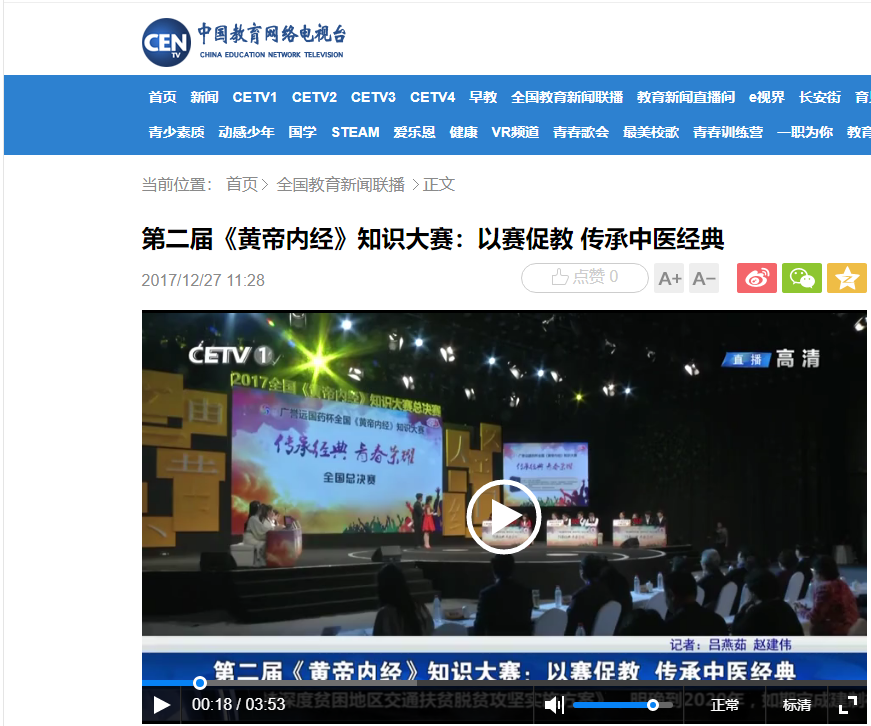 27.2017年第二届《黄帝内经》知识大赛:以赛促教 传承中医经典 中国教育网络电视台